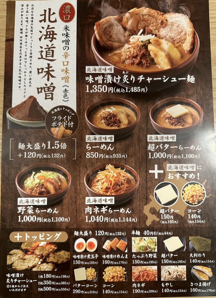 menu at Kitanagoya