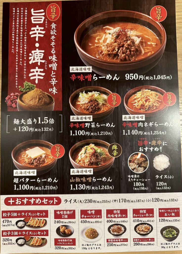 【一宮店 メニュー】