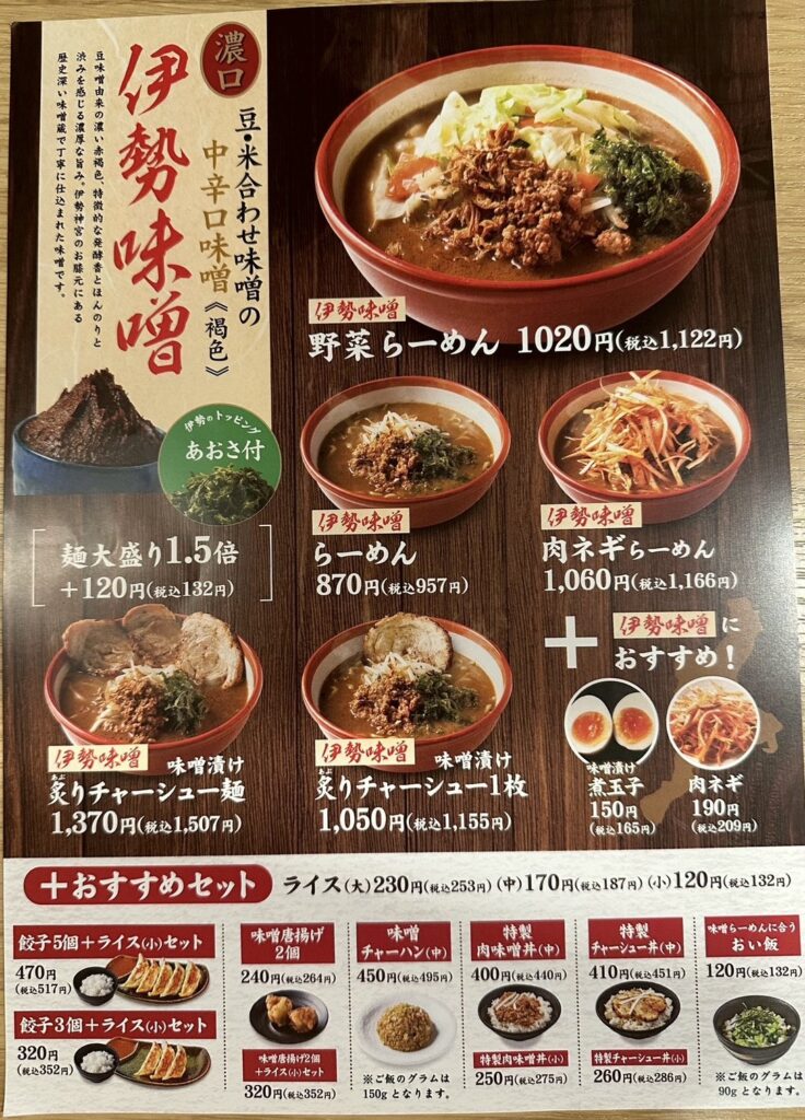 menu at Ichinomiya