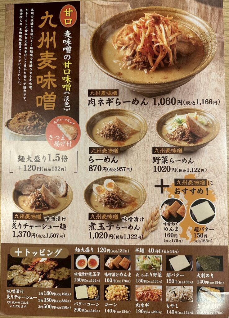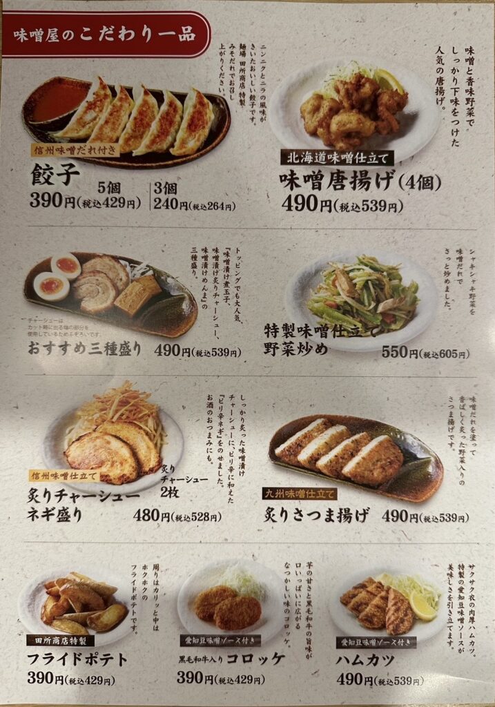 【北名古屋店 メニュー】